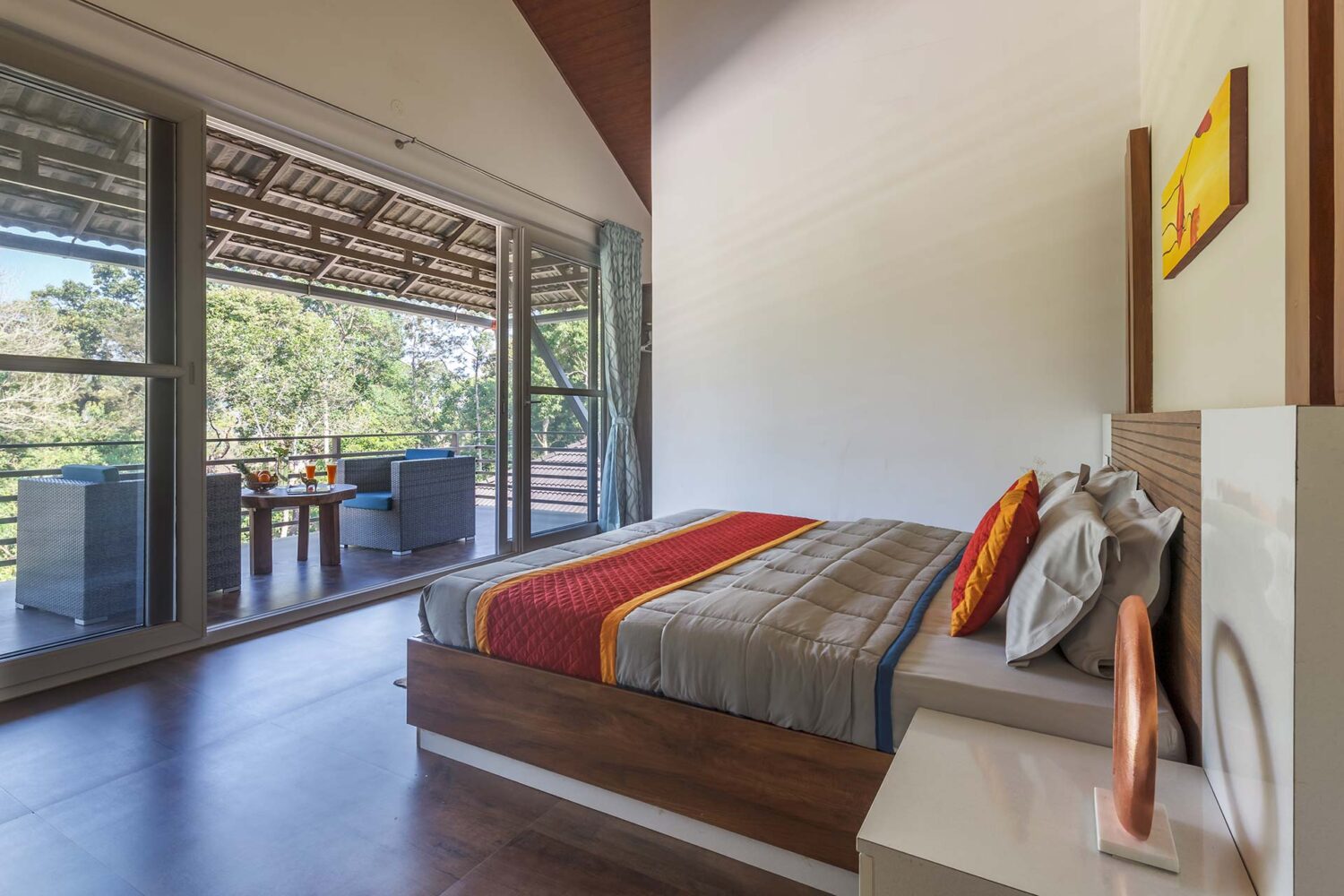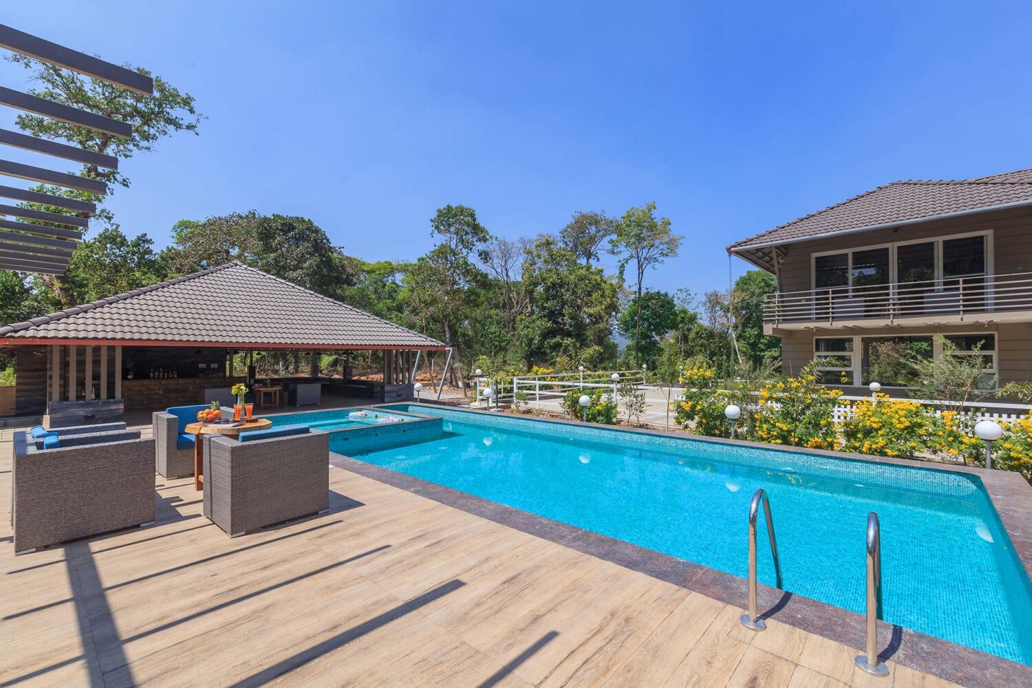 With an extravagant coffee plantation on one side and a view of a mountain on the other; Coffee & Mist is one breathtaking 6000 sq.ft. property set on 5 acres of lush green coffee plantations. Perched atop a hill in the heavenly city of Coorg, this holiday is covered in a blanket of mist making it appear truly magical, especially during the mornings. The expansive lawn is perfect for taking a peaceful walk, and meditating by the pool just adds more to your healthy lifestyle. There are a number of balconies in the house and each of them opens up to magnificent views of the verdant and hazy surroundings. With a myriad of specially designed amenities, this charming villa ensures that your family and friends make infinite memories! For a comfortable and secure stay, please take the time to read the Home Truths, House Rules and Policies thoroughly.